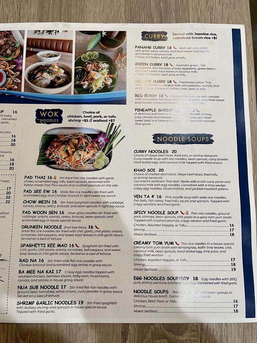 Our mom's Northern Thai dish. Made with a rich curry paste and coconut milk with egg noodles. Garnished with a lime wedge, crispy egg noodles, sliced shallots and pickled mustard greens. Served with choice of chicken drumstick, ribeye beef slices, fried tofu or shrimp tempura.